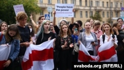 "Для меня лично протестная активность началась, когда люди стали выстраиваться в очереди [на предвыборных пикетах]. А потом, когда 14 июля не допустили [к участию в выборах] Виктора Бабарико, люди стали писать, что они выходят, я сказала: мама, давай посмотрим. И мы пошли на Немигу. Тогда мама впервые увидела, как просто так стоящих людей пакуют в эти "бусики".