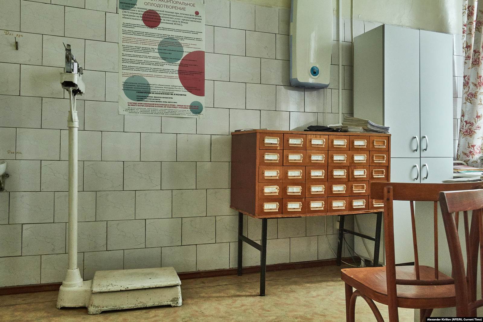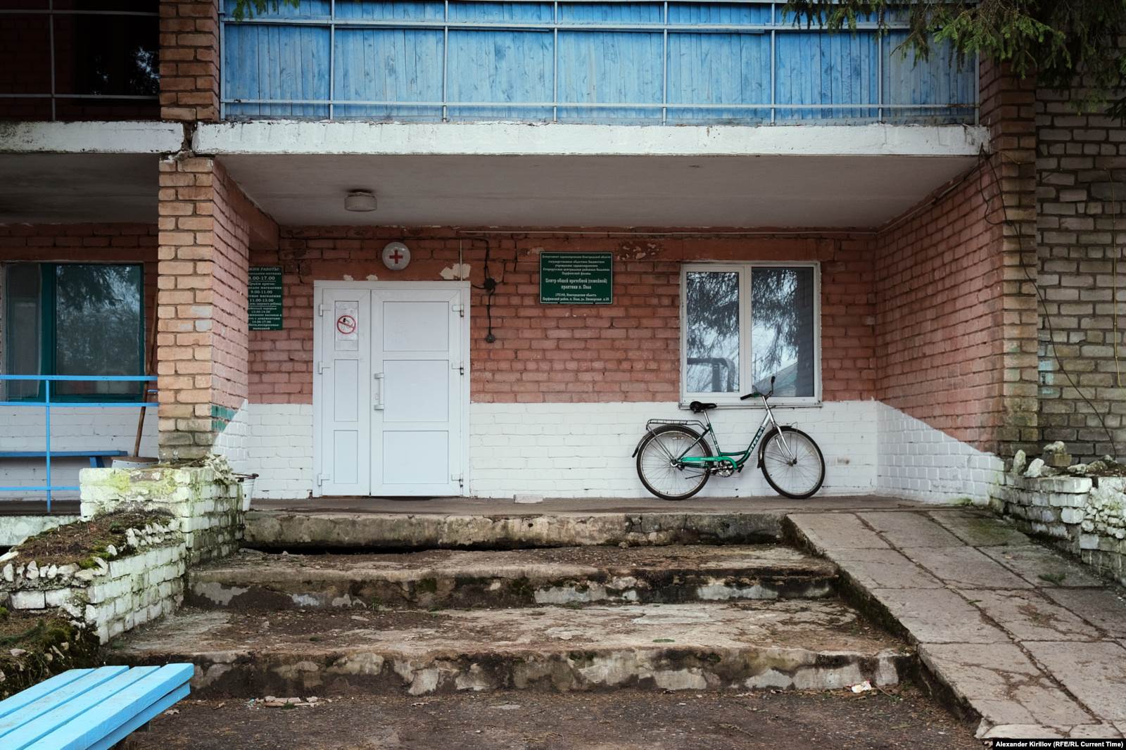 "Скорая" в Поле находится в двухэтажном кирпичном здании. Раньше здесь располагалась больница и круглосуточный стационар, а теперь – отделение общей врачебной практики. Стационар закрыли больше десяти лет назад. На одном из фасадов здания висит старая вывеска "Парикмахерская", во дворе – неработающий фонтан. Судя по окнам, большая часть помещений никак не используется. В "скорой" не жалуют ни журналистов, ни своих коллег – членов "Альянса врачей". Увидев Валентину и Ульяну у входа, один из водителей не удерживается от комментария: "Альянс приехал, альянсики". Но обьяснять корреспонденту, за что не любит коллег, мужчина отказался.